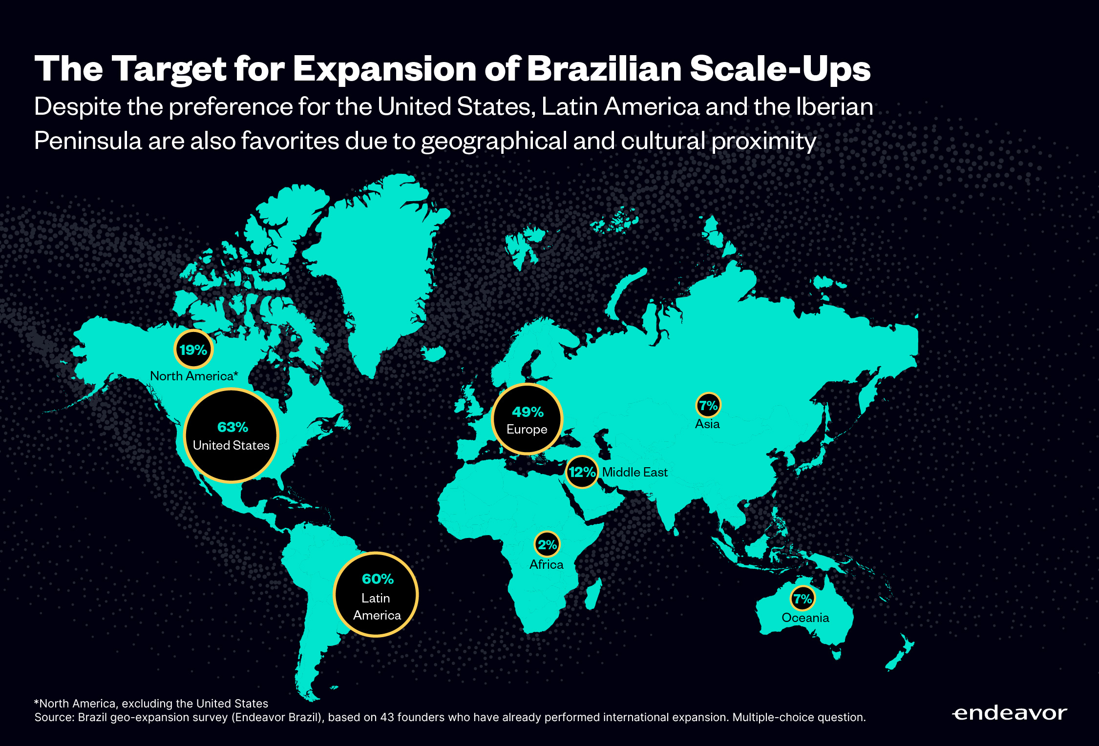 In order to better understand this dynamic, we conducted a national survey with 101 Brazilian Scale-Up founders — primarily from the Endeavor Network — to capture their expectations and experiences around international expansion. We also conducted 20 in-depth interviews with entrepreneurs and ecosystem experts.