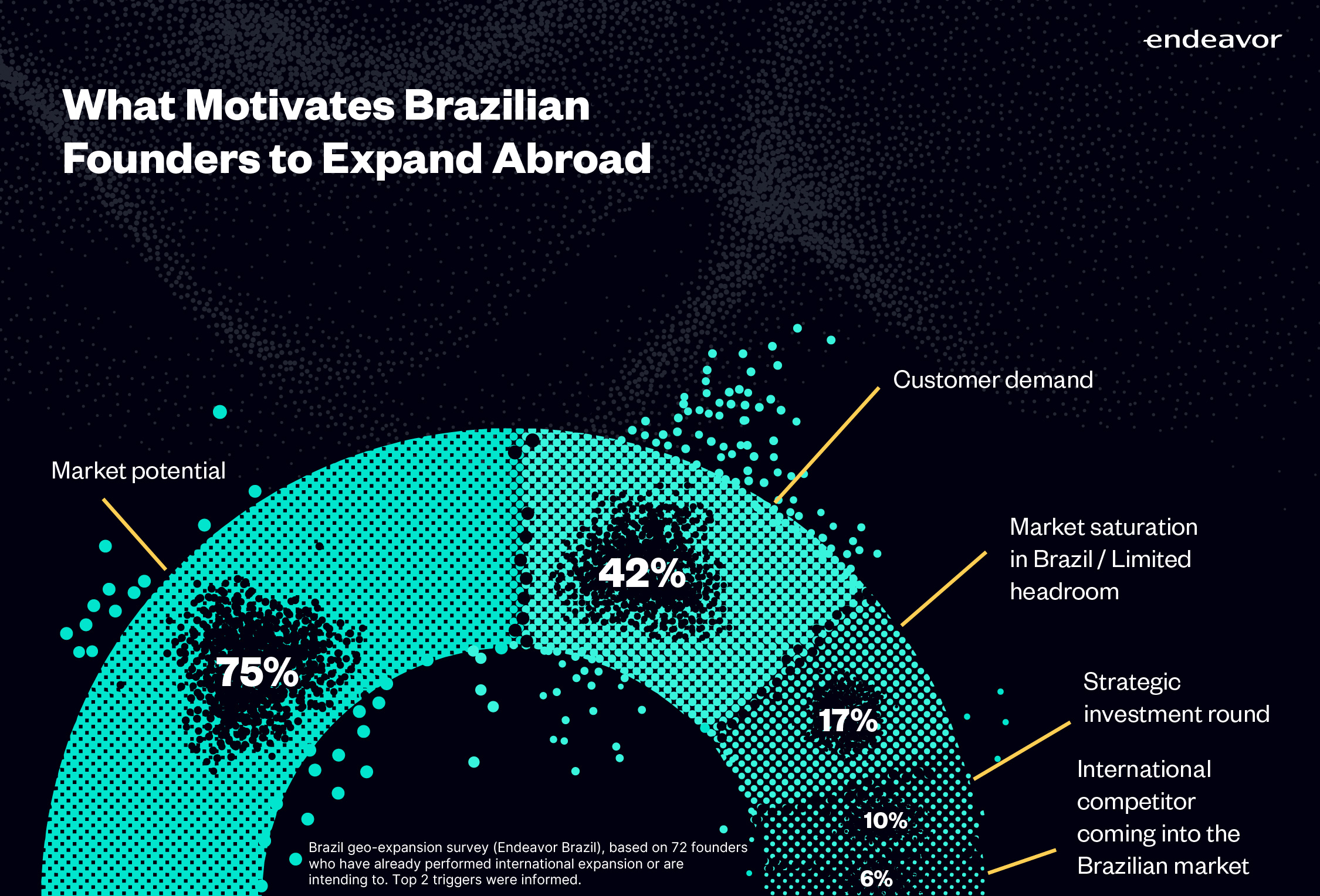 In our survey, only 17% of founders cite the saturation of the Brazilian market or limitation in local growth as motivation for expansion, and only 6% felt threatened by the entry of an international competitor.